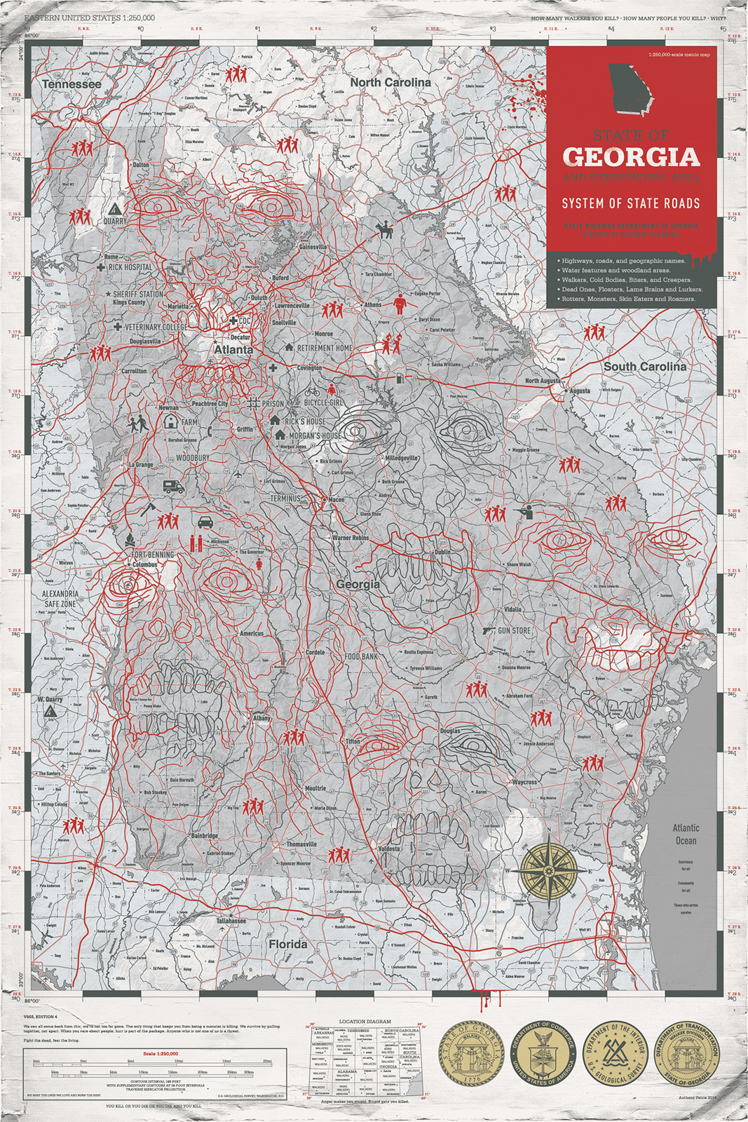 The Godzilla one is absolute perfection, crafted in the same fashion as Anthony Petrie's outstanding Jaws print from his first show back in January of 2015. But honestly, all of these pieces are outstanding. The detail is just astounding, especially on that map for The Walking Dead. That last one is actually a wood variant of the Ferris Bueller's Day Off piece that will be at the show. And these are just some of the pieces that will be on display and available to buy at Gallery 1988.