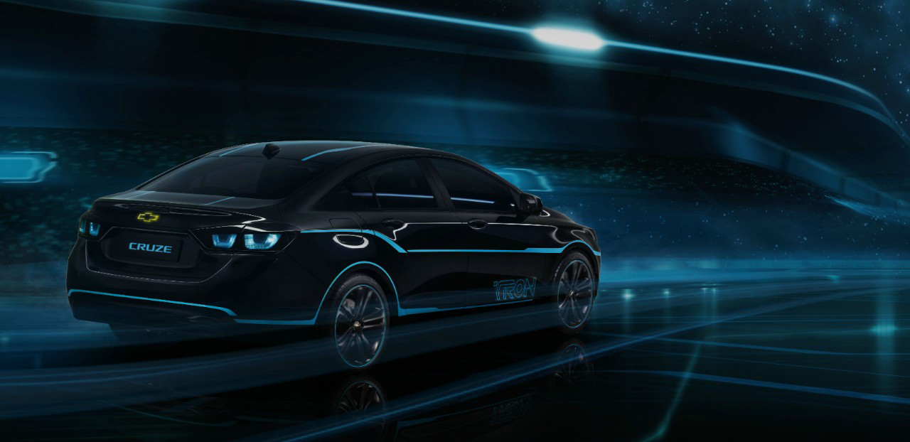 Arriving about six years too late for a successful cross promotion with the sequel TRON Legacy, the automobile manufacturer Chevrolet just unveiled a new version of their signature Cruze sedan. However, this version of the car is inspired by the aesthetics of the world of TRON.