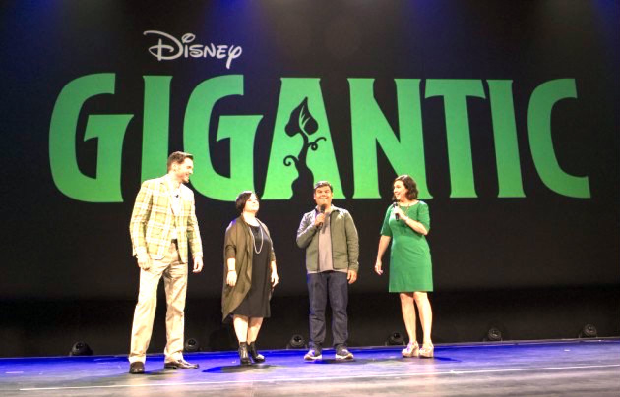 The project was in development since 2013 and initially had the title "Giants." Gigantic was being developed as a musical, with songs written by Kristen Anderson-Lopez and Robert Lopez, who previously wrote the music for Frozen, for which they won the Academy Award for Best Original Song. Tangled helmer Nathan Greno was directing the film alongside Meg LeFauve.