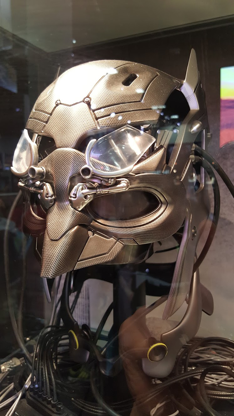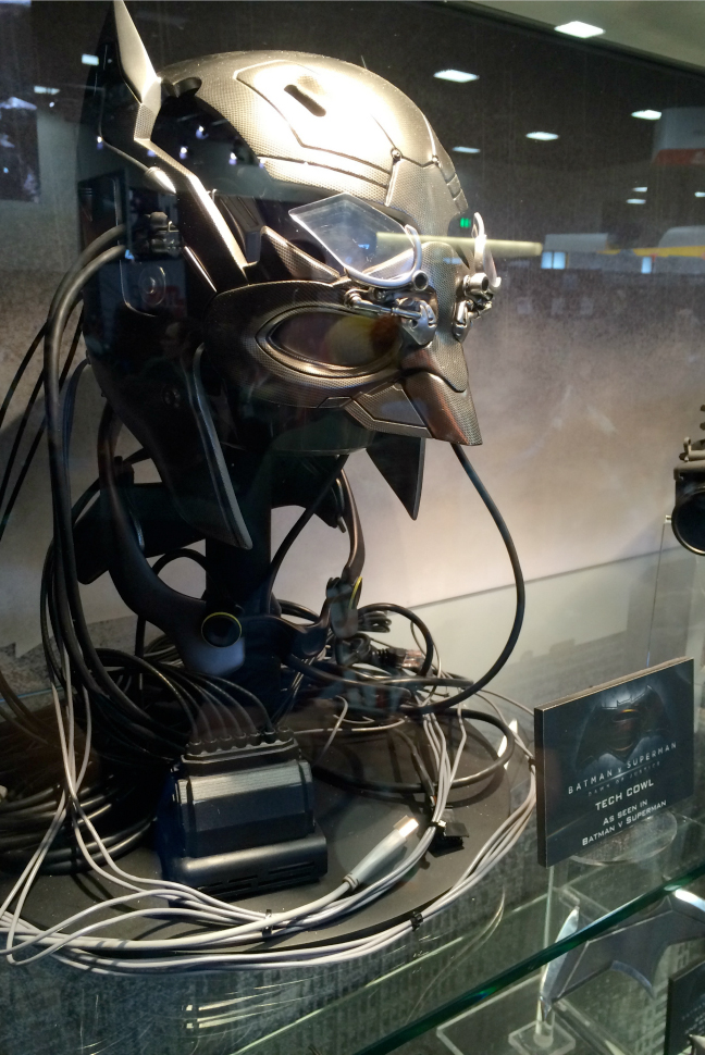 As you can see in a couple of the photos (some come courtesy of THR), there's some pretty vague descriptions given to some of the items on display. For example, there's the Tech Cowl, which looks like a complicated little helmet. Perhaps this is something that Batman wears when he's piloting his new aerial vehicle? It definitely looks like something that could be worn while piloting a vehicle.