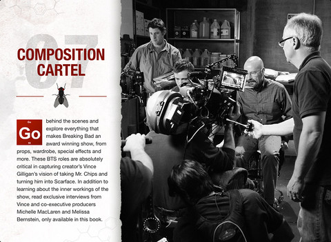 The Breaking Bad: Alchemy multi-touch book is an ownable piece of history that provides an evocative fan experience and celebrates the true legacy of the Breaking Bad series. With over 120 pages of original content and more than 350 interactive elements, Breaking Bad: Alchemy highlights the unique visual, aural, narrative and filmic elements that make Breaking Bad one of the most magnetic series in television history.