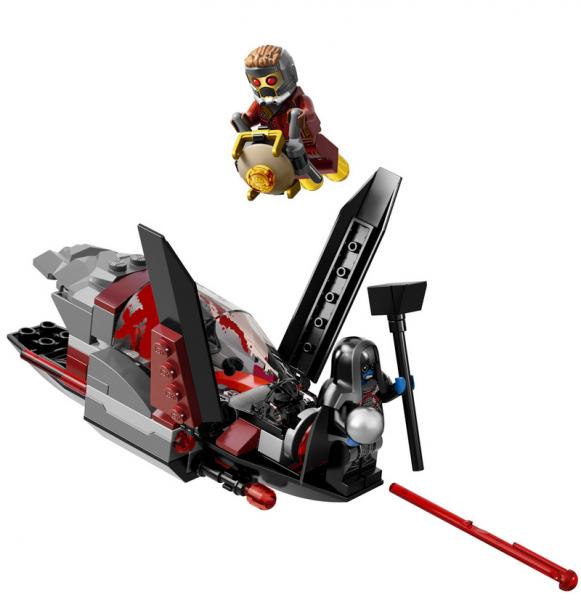 The man in black looks to be Ronan the Accuser, the flying man in red is Star-Lord and Gamora is piloting the ship. According to USA Today, the set consists of 665 pieces and will cost $74.99. In addition to those three figures, Drax the Destroyer and an alien Sakaaran Soldier are part of the set. And though images of this box have previously leaked, this is by far the best look yet.