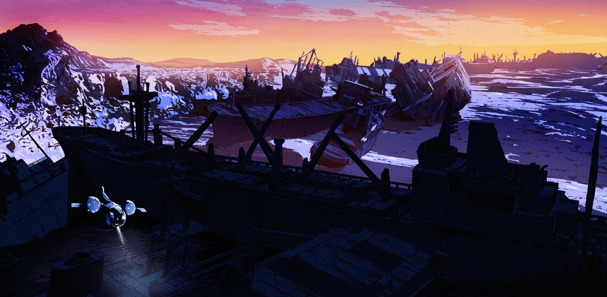 Discussing his work on the Mondo vinyl packaging, Kilian said, "When I was given the honor to create artwork for the Oblivion soundtrack, I wanted toconvey the feeling of a world that was left behind; a place full of traces and remnants of a civilization long gone. An environment that truly makes the person exploring it feel small is a theme I often come back to in my artwork. For the front cover I wanted to describe this in a peaceful way. The warm colors of a sunset, or sunrise, adds an air of tranquility, providing the image a nice balance against the sharp, dark silhouettes in the foreground."