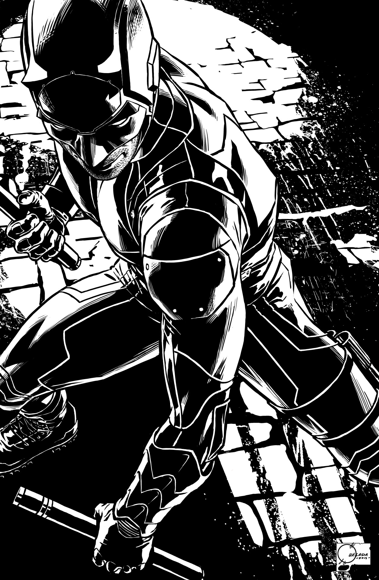 Those hoping for a glimpse at a redesigned costume or a first look at a new character will be a little disappointed. Those content to be teased with stylish concept art will be pleased. However, this isn't just a drawing of Hell's Kitchen's super-powered vigilante. Note the peculiar shape of the spotlight illuminating the ground behind ol' Hornhead. Yep, it looks like season 2 really is going to be about a war between Daredevil and Frank Castle, aka, the Punisher.