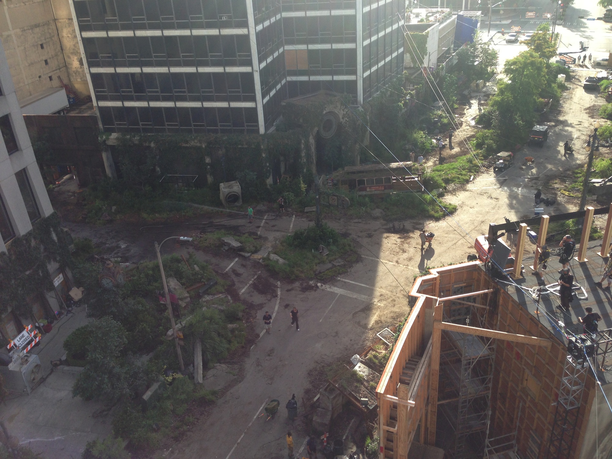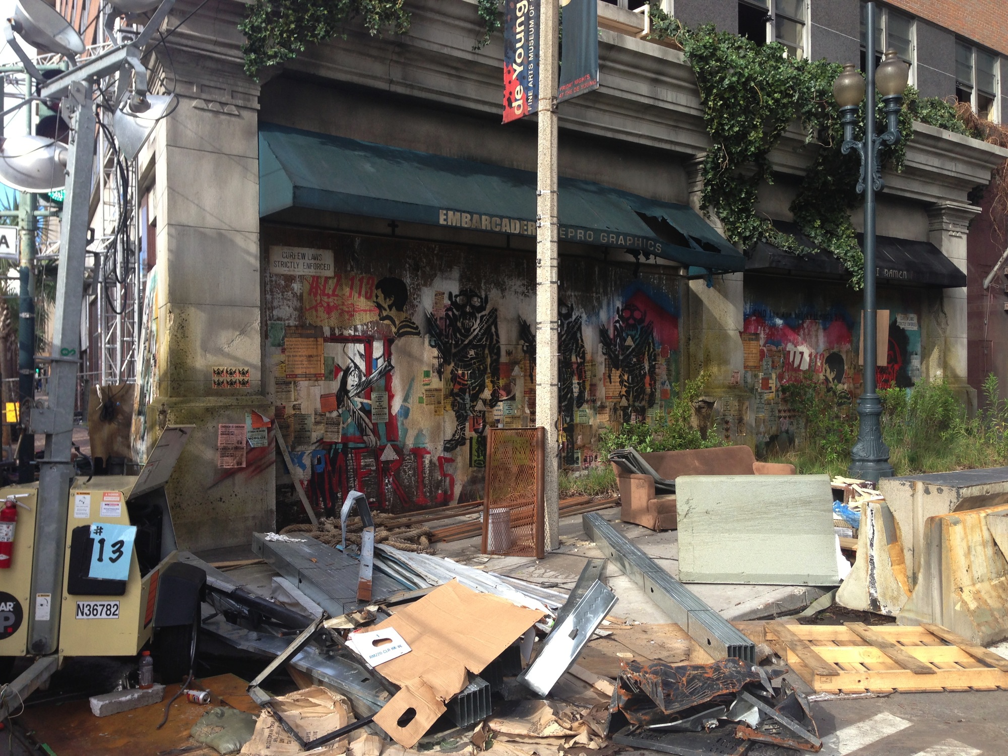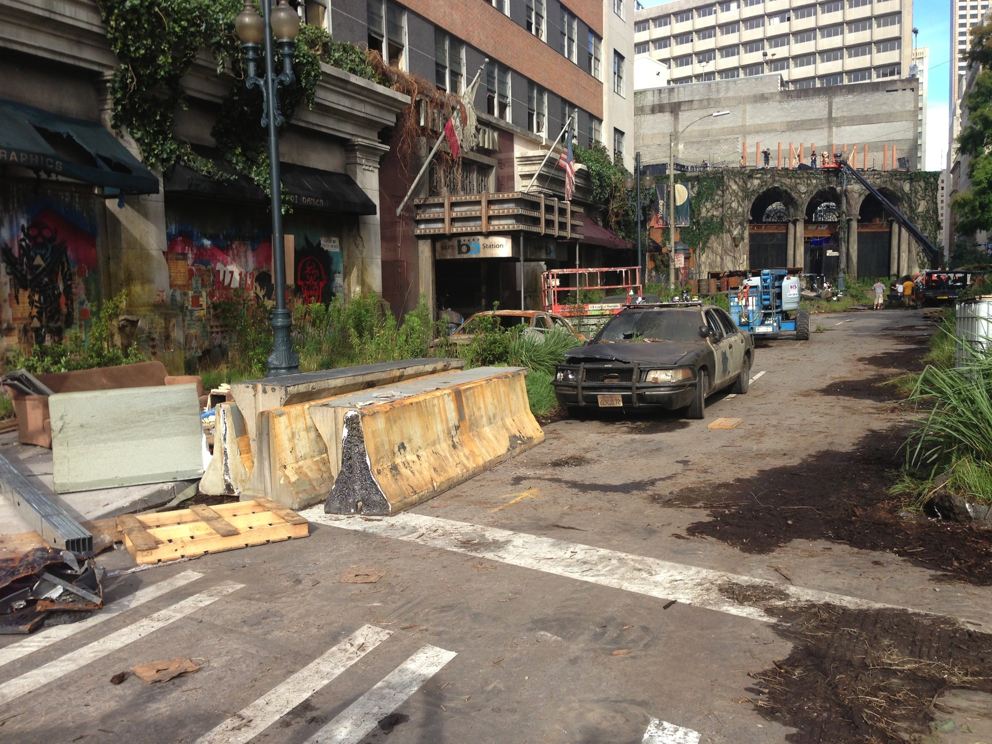 For the San Francisco set, production took advantage of an area with buildings which are waiting to be rehabbed. The one-block area of New Orleans that was used for the San Francisco set includes a building which had a fire in 1971 and was never reopened — the real life destruction adds to the post apocalyptic look of the area. They shut down this four block area for over six weeks.