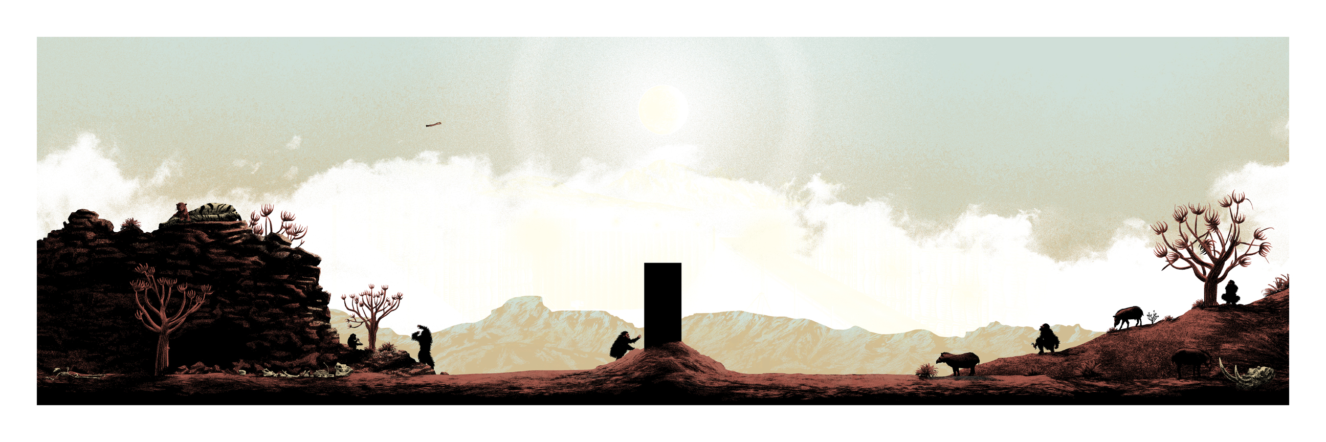 Here's the deal. The Strangelove is just one colorway. The 2001 is a regular (the apes) with a glow in the dark element. There's a variant too, but that'll be revealed later. These are all 12 x 36 inches. We're still waiting on cost and edition size.