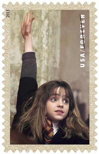 The Harry Potter films brought J.K. Rowling's magical world to the screen, giving physical shape to the characters, creatures, and places that had lived in readers' imaginations since publication of the first book. The U.S. Postal Service celebrates that magic with a 20-stamp souvenir booklet featuring stills from the award-winning Warner Bros. movies.The folded booklet has five pages. The front cover features the title Harry Potter, with an image of Harry playing Quidditch, the beloved wizarding sport. The back cover has a picture of a young Harry in class, taking notes with his quill; the titleHarry Potter is centered under the picture. When the booklet is opened, an illustration of Hogwarts covers two pages on the back, and selvage text appears on the last page. Inside there are five groupings of four stamps, each grouping set on its own page. Each set of four stamps, featuring stills from the Warner Bros. movies, surrounds the red wax seal of Hogwarts School of Witchcraft and WizardryHarry Potter's story begins when he receives a letter and a visitor that change his life. He learns that he is the orphaned son of two wizards and possesses unique magical powers of his own. Invited to attend Hogwarts School of Witchcraft and Wizardry, Harry embarks on an adventure he never could have imagined.The stamps capture the magic of Harry's world, with photographs of a few of the brave heroes, fearsome villains, and extraordinary creatures that he encounters throughout his adventures.Best friends since first meeting on the Hogwarts Express, Harry, Ron Weasley, and Hermione Granger face new challenges each year they attend Hogwarts. The first set of stamps shows the friends in action.The second stamp set includes photos of four of the amazing creatures that will one day come to Harry's aid-Hedwig, Harry's pet owl; Fawkes the phoenix; Dobby the house-elf; and Buckbeak the Hippogriff.At Hogwarts, the friends receive support and guidance from many of their professors, among them the four depicted on the third set of stamps-Rubeus Hagrid, Professor Minerva McGonagall, Headmaster Albus Dumbledore, and Professor Severus Snape.Their fellow students-including Fred and George Weasley, Luna Lovegood, and Ginny Weasley, featured on the fourth group of stamps-fight bravely alongside Harry, Hermione, and Ron in the Battle of Hogwarts.Harry and friends encounter frightening villains, none more terrifying than Lord Voldemort, considered to be the most evil wizard of all time. He is featured alongside two of his fanatic followers-the sinister Bellatrix Lestrange and devious Draco Malfoy-on the fifth set of stamps, which also includes a photo of Harry during his final, epic battle with Voldemort.The art directors for the Harry Potter Stamp Collection were William J. Gicker and Greg Breeding. Breeding designed the souvenir booklet using images from the Warner Bros. Harry Potter movies.The Harry Potter stamps are being issued as Forever® stamps. Forever stamps are always equal in value to the current First-Class Mail® one-ounce rate.