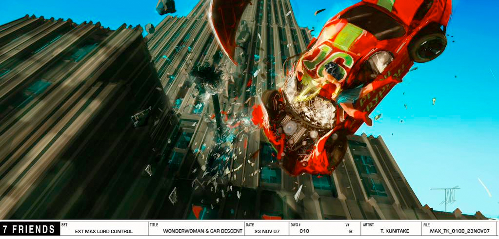 As you can see above, the Wonder Woman artwork features her flying through Themyscira and also flying into action by grabbing a falling race car out of the sky just outside of Max Lord's skyscraper. The Themyscira shot is just gorgeous, but without context, that second action shot just seems really peculiar. But it does show us that the working title for the movie was 7 Friends.