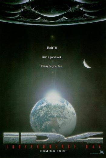 See what we mean? The aliens are not messing around this time. Basically though, this poster is a mix of elements used at all stages of the marketing of the first Independence Day. The earth in the first teaser, the angle of the ships in the second, the dominance and laser of the third. (Thanks to IMP Awards for the classic posters, all of which were on my wall in 1996).