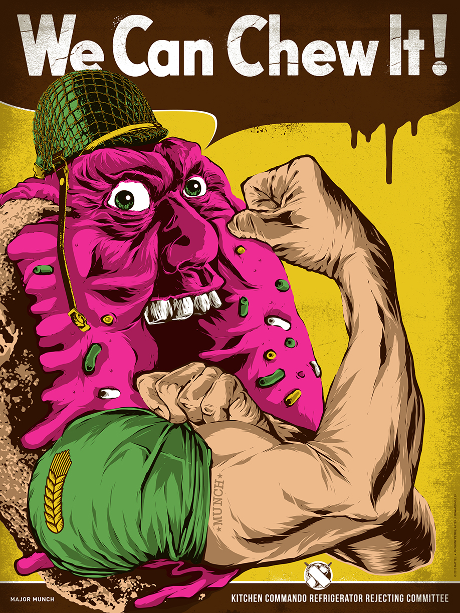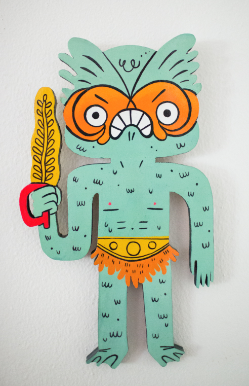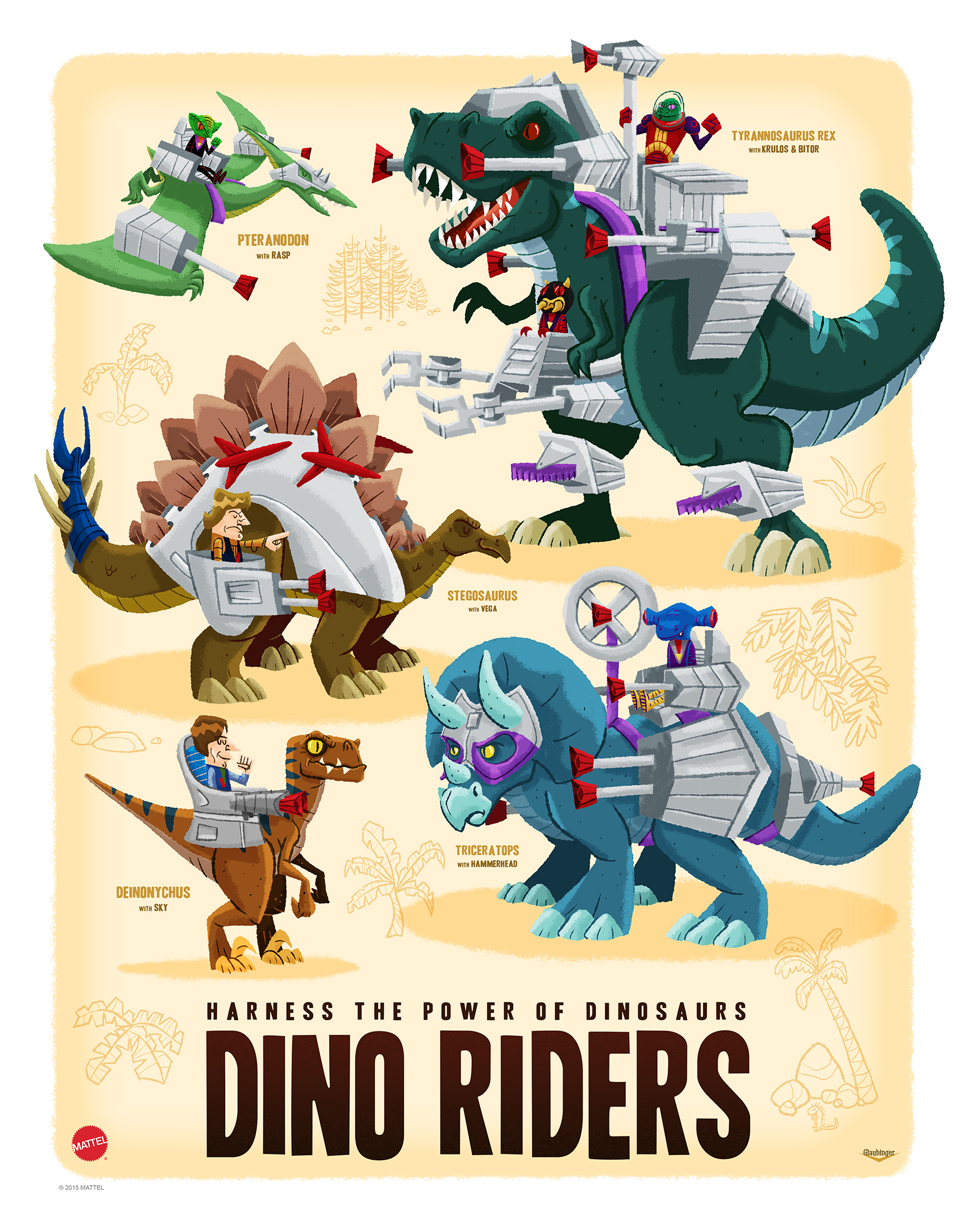 The art in the show includes work based on properties such as Masters of the Universe, Barbie, Hot Wheels, M.U.S.C.L.E, Food Fighters, Magic 8-Ball, Rock 'Em Sock 'Em Robots, Dino Riders and Fisher Price toys.
