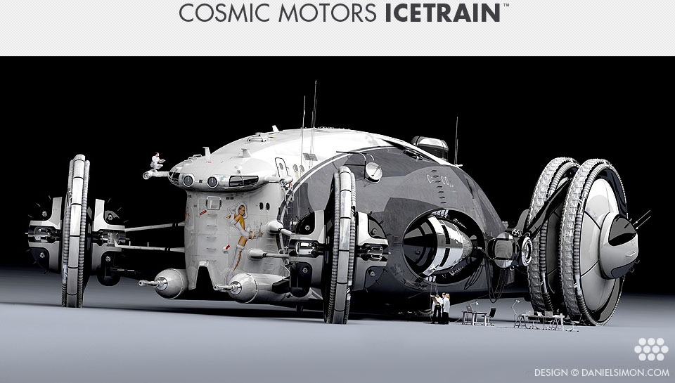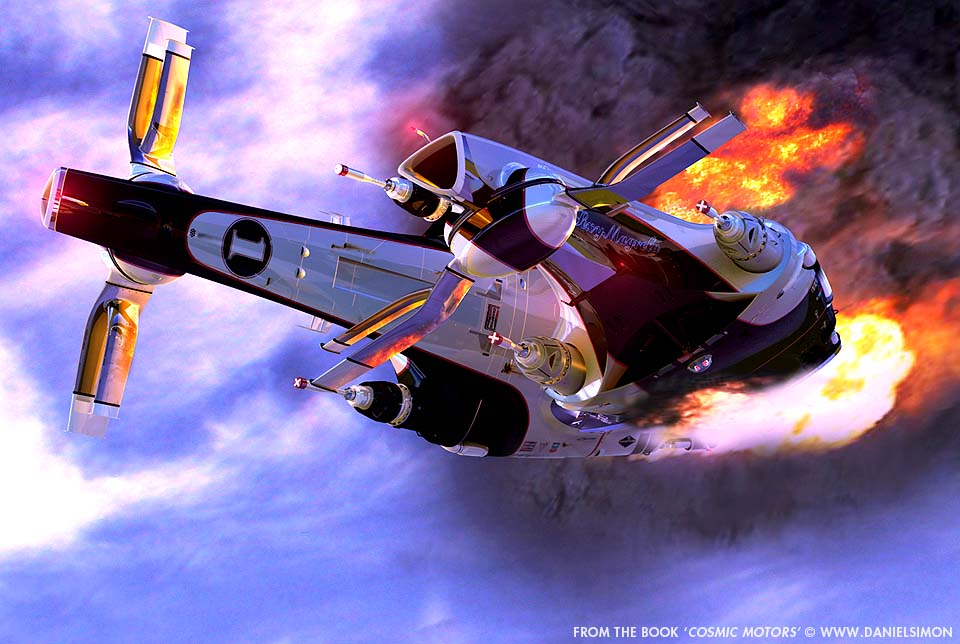 Simon, who has been a designer, for vehicles in particular, on films like Prometheus, Oblivion, Tron Legacy and Captain America: The First Avenger, released the book in 2007. In it, he creates a far away sci-fi universe through vehicles. Each chapter tells a story of the design and purpose of a futuristic, awesome looking car/hovercraft/motorcycle. We've got a gallery of examples below.