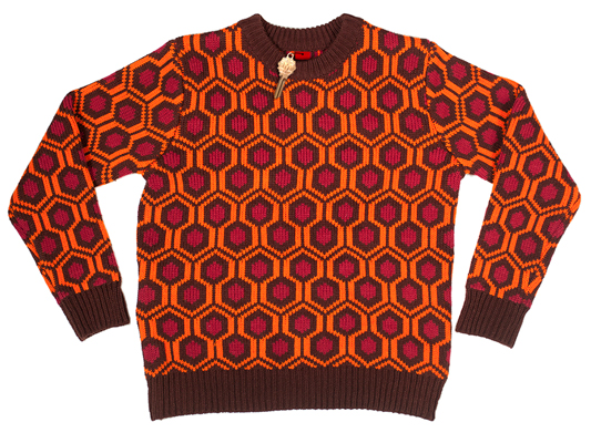 The company has just announced the Mondo 237 collection. It's a series of sweaters, accessories and household products based on the carpet design of the Overlook Hotel in Stanley Kubrick's The Shining, which was recently featured in the poster for the documentary Room 237. Check out all the images below.