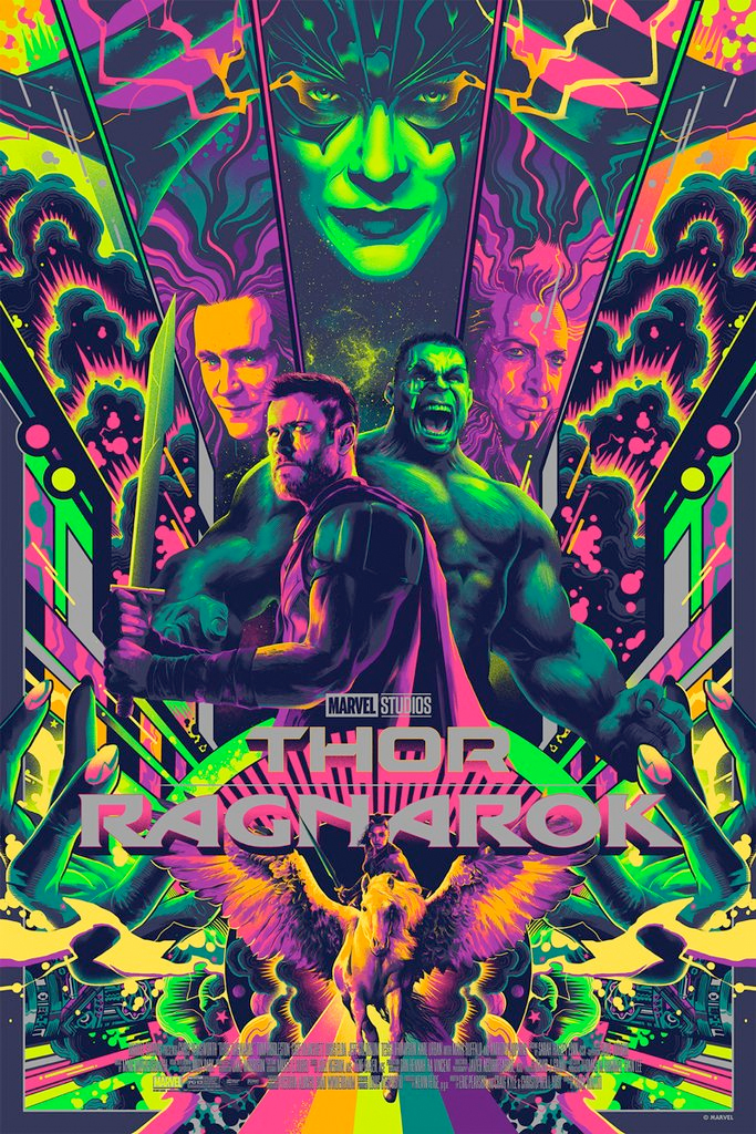 First up, here's a pair of new prints for Thor: Ragnarok designed by Matt Taylor: