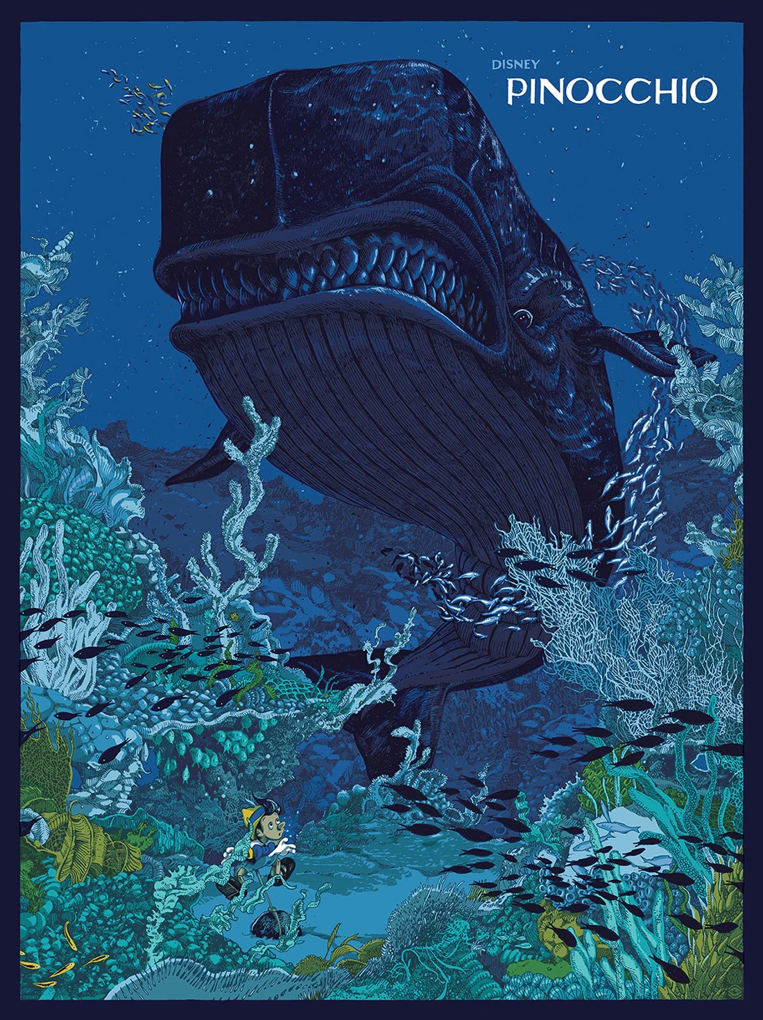 For the record, here are the other posters from the show that have been revealed so far – Jonathan Burton's 101 Dalmatians, Matt Taylor's Aladdin, Ken Taylor's Big Hero 6, Pinocchio by Jessica Seamans, Snow White and the Seven Dwarfs by James Flames, Lilo and Stich by Rosemary Valero O'Connell, Alice in Wonderland by Tom Whalen, Mary Poppins by Marc Aspinall, The Little Mermaid by Nicols Delort, and The Fox and the Hound by Teagan White.