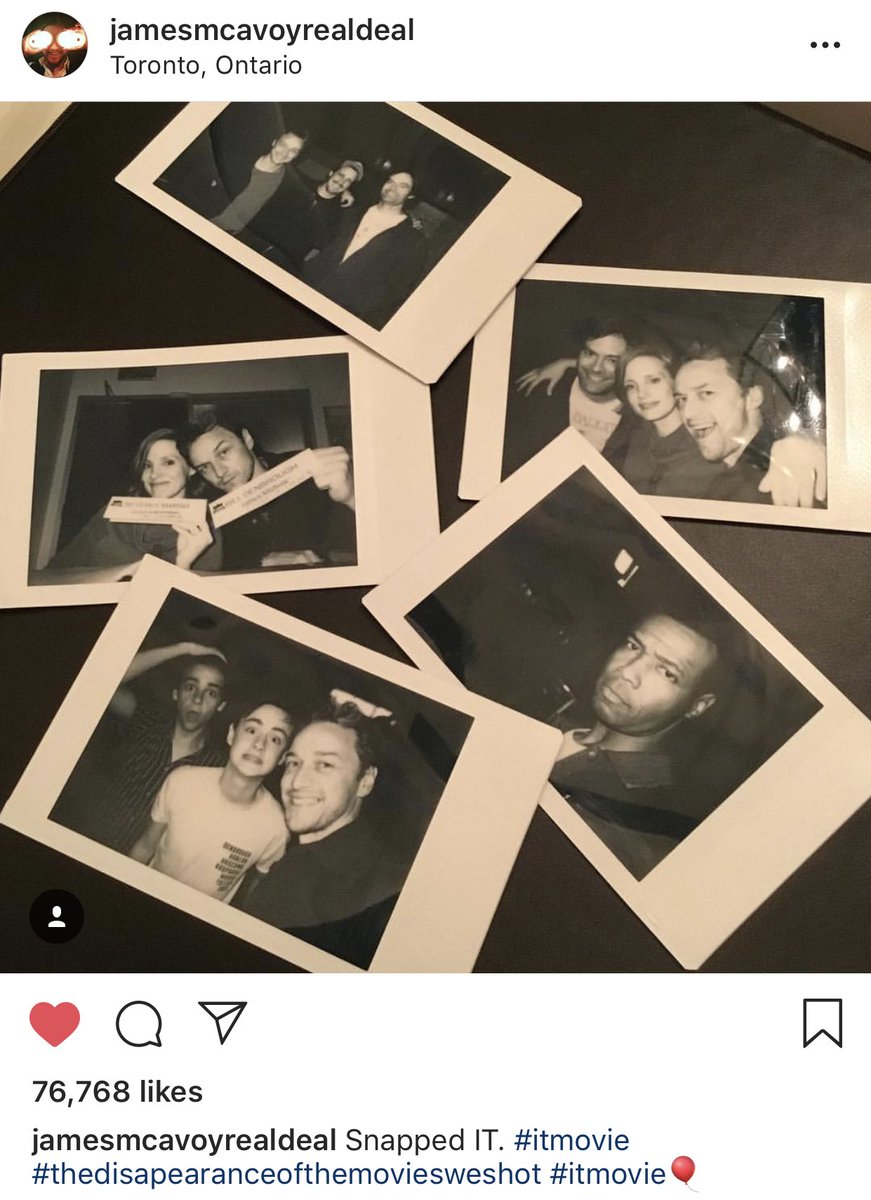It: Chapter 2 has begun production in Toronto, and it's clear the cast is already having fun. A new cast photo was recently released showing the adult Losers' Club together. And in addition to that, star Jessica Chastain and James McAvoy took to social media to share some pics. One image shows Chastain blended with Sophia Lillis, the actress who played the younger version of her character Beverly Marsh. The other, from McAvoy, shows the cast hanging out together behind-the-scenes. There's nothing of real substance here, but it's fun to see these actors getting into their roles. It: Chapter 2 opens on September 6, 2019. See the images below.