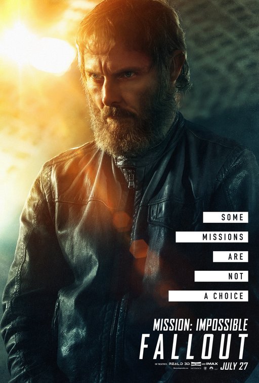 Here's a gallery of nine character posters from Mission: Impossible – Fallout, featuring Tom Cruise, Henry Cavill, Simon Pegg, Rebecca Ferguson, Angela Bassett, Sean Harris, Vanessa Kirby, Ving Rhames, and Alec Baldwin. This movie looks great, but I'll forever be baffled at the notion of anyone besides the actors in question actually purchasing one of these and hanging them on a wall.