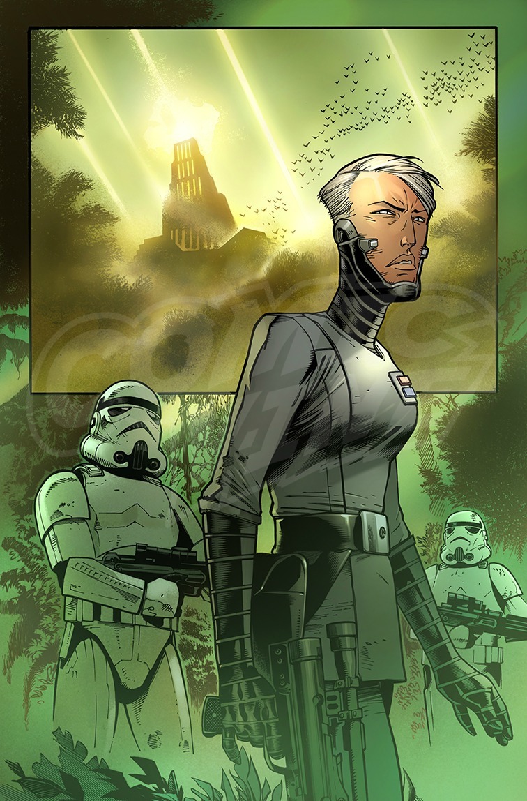 Comic Vine has debuted a cover and several interior pages for Doctor Aphra #4, an upcoming issue of Marvel's newest (and so far, very good!) comic series. A spin-off from the Darth Vader series, writer Kieron Gillen and artist Kev Walker's comic follows the rogue criminal/archaeologist of the title on her own solo adventures, blending black comedy and crazy adventure.