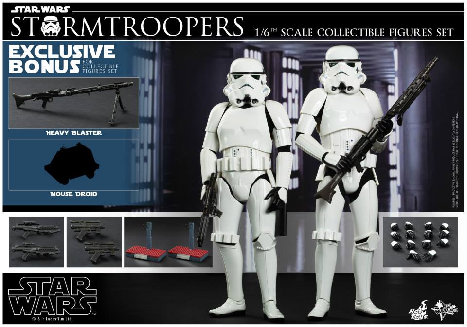 Hot Toys made collectors very happy recently when they revealed they'd acquired the license to make Star Wars toys. First were Han and Chewie and now, they've revealed some Stormtroopesr. Seems odd to go from two iconic characters down to such a disposable one but, the figure is beautiful none the less. You can read more about it, and see additional photos at this link. At least it comes with two. Here are some photos.