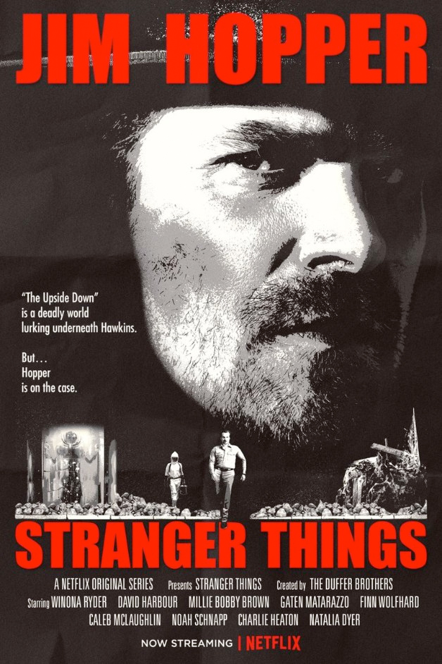 For the third poster, Stranger Things gave David Harbour the spotlight with a Running Man inspired poster: