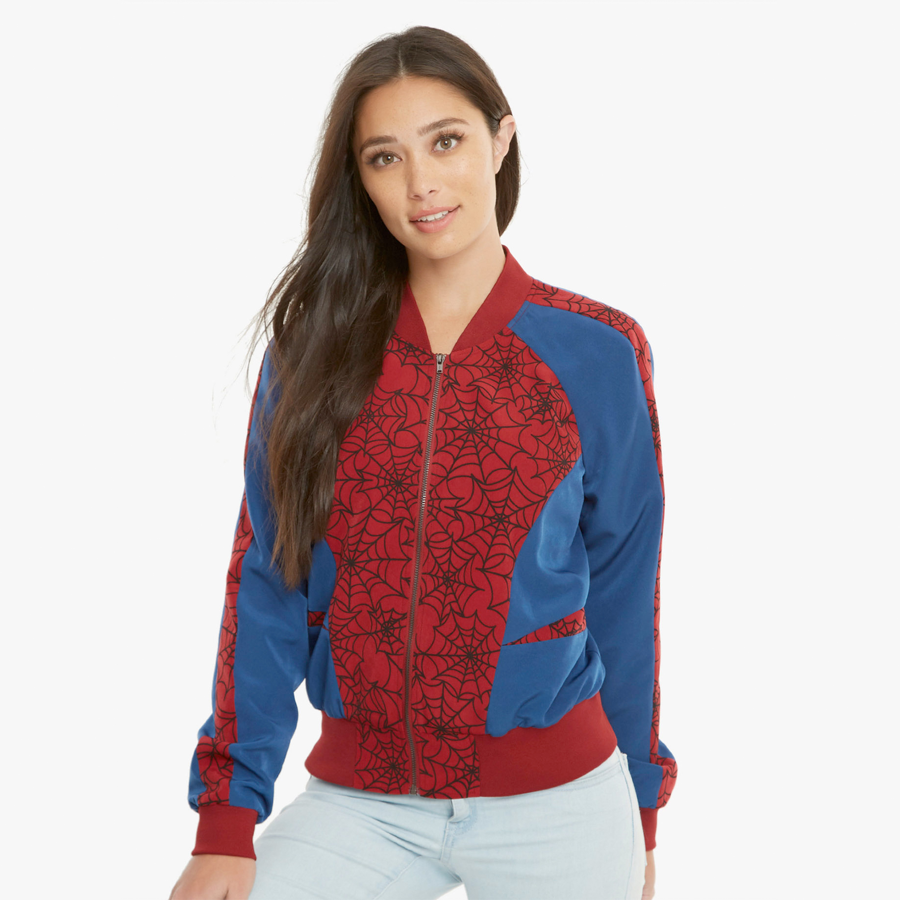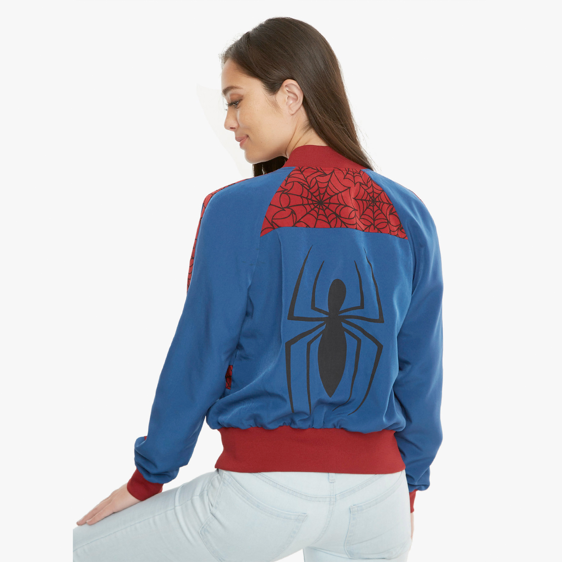Ladies, show your love for Spider-Man and look stylish at the same time with Her Universe's satin bomber jacket.