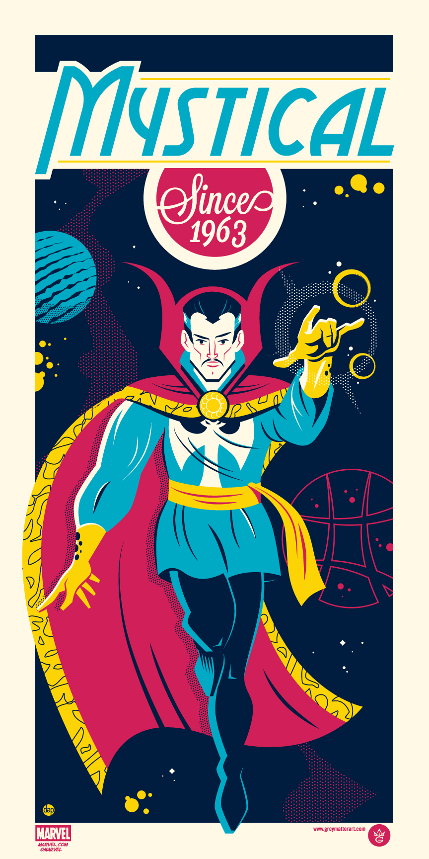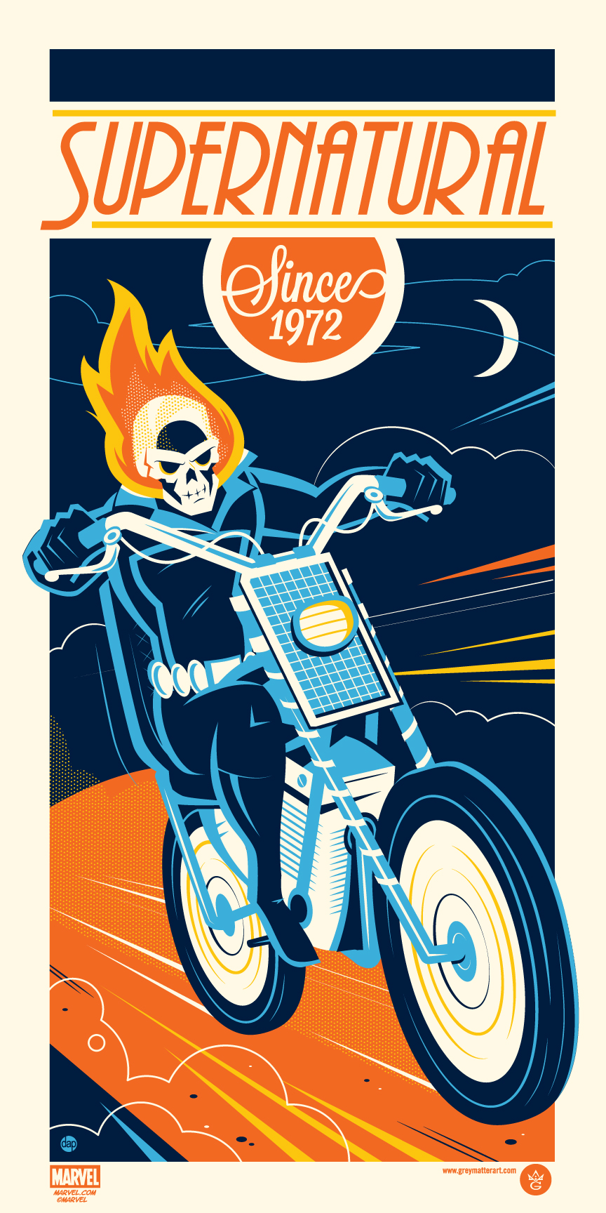 Grey Matter Art unveils Ghost Rider and Doctor Strange posters from Dave Perillo, on sale Wednesday, July 1.
