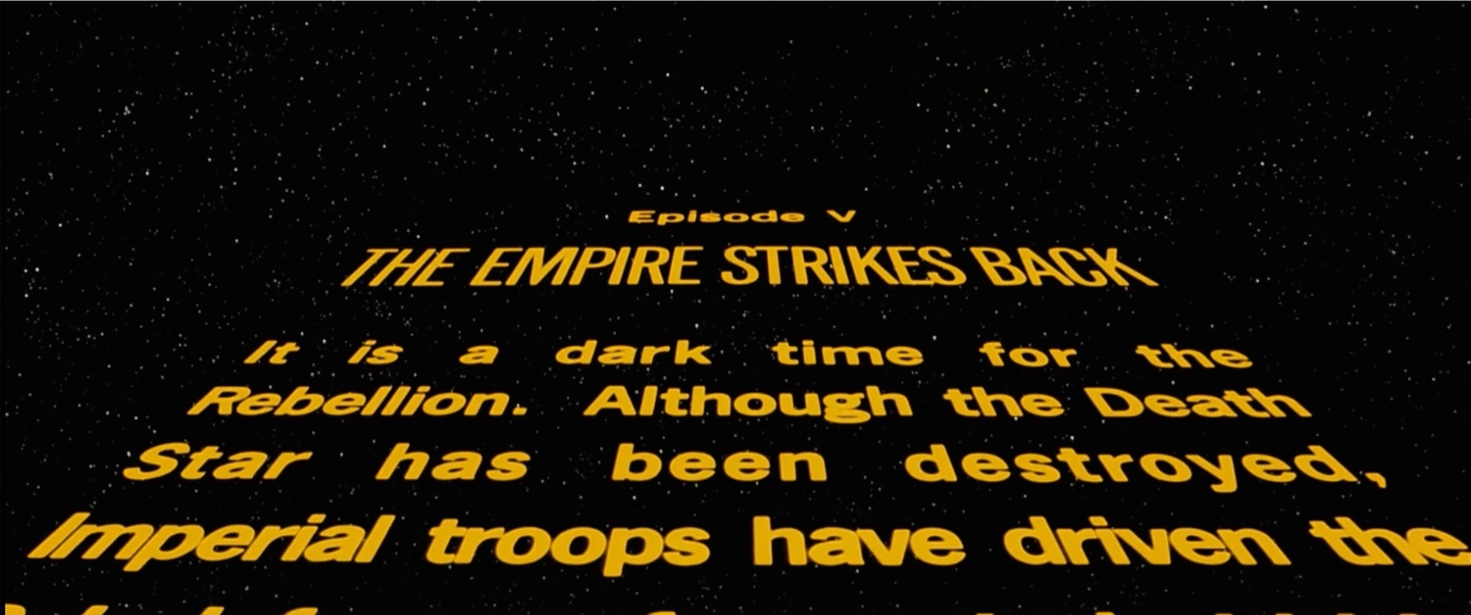 The 'roll-up' has a very specific typographical treatment in the previous six films – and the font used for the episode title, "The Force Awakens", is wrong. Really wrong. The Star Wars opening crawl is perhaps the most famous narrative device in cinema history. Star Wars has many stylistic hallmarks, such as the Kurosawa-inspired scene wipe. But the opening crawl has become so associated with Star Wars that no other film could possibly use it without seeming like a blatant lift. In fact, you might say that the opening crawl is the thing that makes a Star Wars film feel like The Real Deal™. When series creator George Lucas got his chance to make the first sequel to Star Wars (1980's The Empire Strikes Back), he made a very controversial move — re-titling his original blockbuster, Star Wars, by appending Episode IV — A New Hope. With this in mind, he decided the visual consistency of the opening crawl across all future episodes would be so sacrosanct, that he completely re-shot a new opening crawl that contained the new title and episode number. Ever since, every main saga episode of Star Wars has contained the Episode number, typeset in the News Gothic family, and the title of the film itself, typeset in the Univers family.