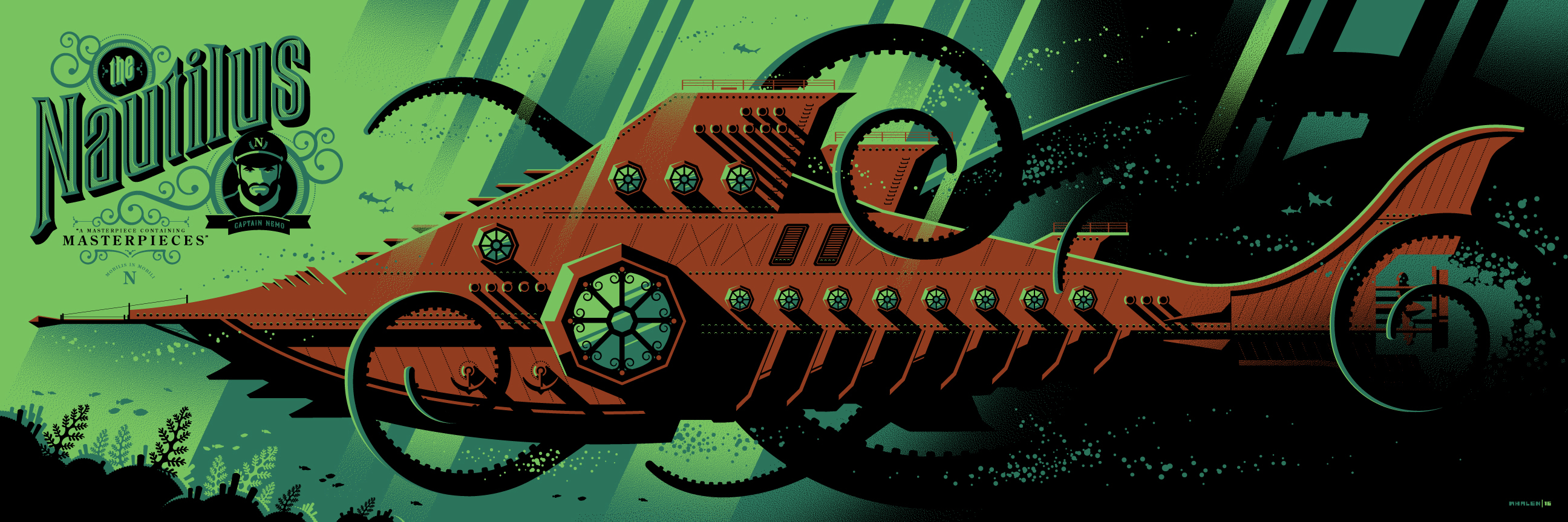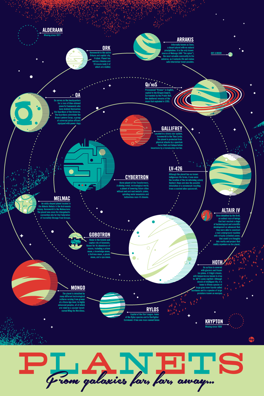 One part mid-century advertisements, a hand full of cult classics and spiced with pop culture inspirations, Whalen and Perillo have brewed up their version of a science fair. New infographic pieces detailing planets from galaxies far, far, away, Pee Wee's Breakfast Machine, and a spec sheet for the U.S.S. Sulaco will guide you on this science experiment.