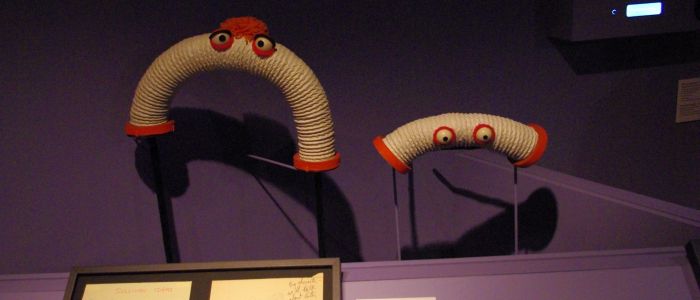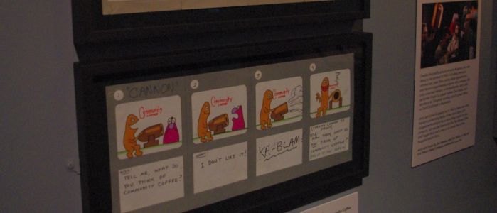 Before he had success with Muppets, Henson was all about the commercials. In this section you'll find videos playing many of his most famous ads, including the hilarious (and hilariously violent!) Wilkins Coffee ads. Scripts and storyboards line the walls and reveal that his curiously dark sense of humor was always there.