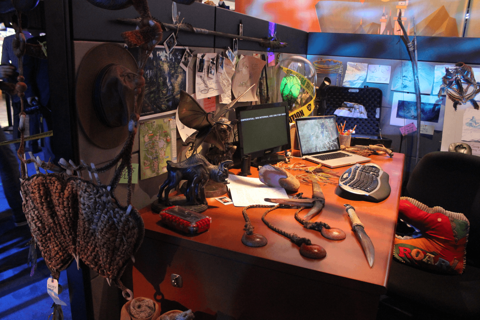 We haven't heard much about the Disney's plans for Avatar-Land since the company first announced their plan to bring Pandora to the Magic Kingdom back in September 2011. And it doesn't seem like they will be revealing anything new during D23 Expo this weekend, but Disney Imagineering did offer a little tease in their pavilion on the show floor. The tease is in the form of an exhibit of all the souvenirs they brought back from their "research trip to Pandora". Check out the photos after the jump.