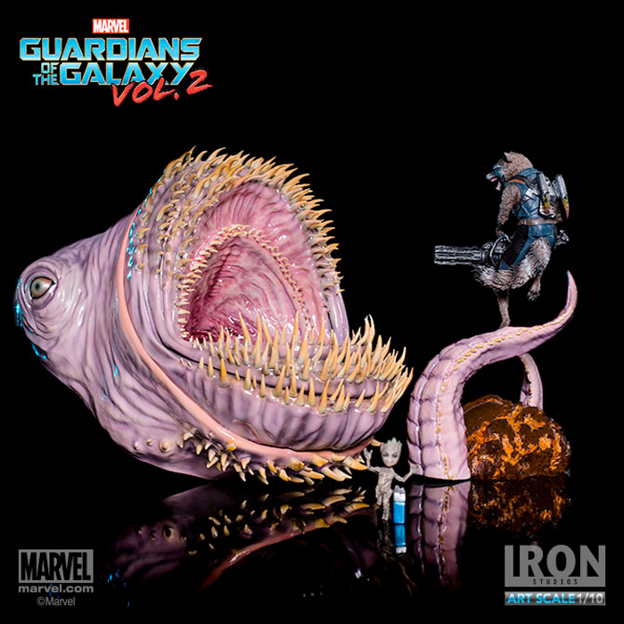 Fueled by Electric Light Orchestra's upbeat track "Mr. Blue Sky," we get to see our ragtag team of cosmic criminals turned heroes take on a battery hungry monster called an abilisk. But that's all in the background, because the real action comes from the adorable Baby Groot shaking his roots and branches all over the place. That entire scene comes to life in a new 1:10 scale Guardians of the Galaxy 2 diorama from Iron Studios. Check it out below.