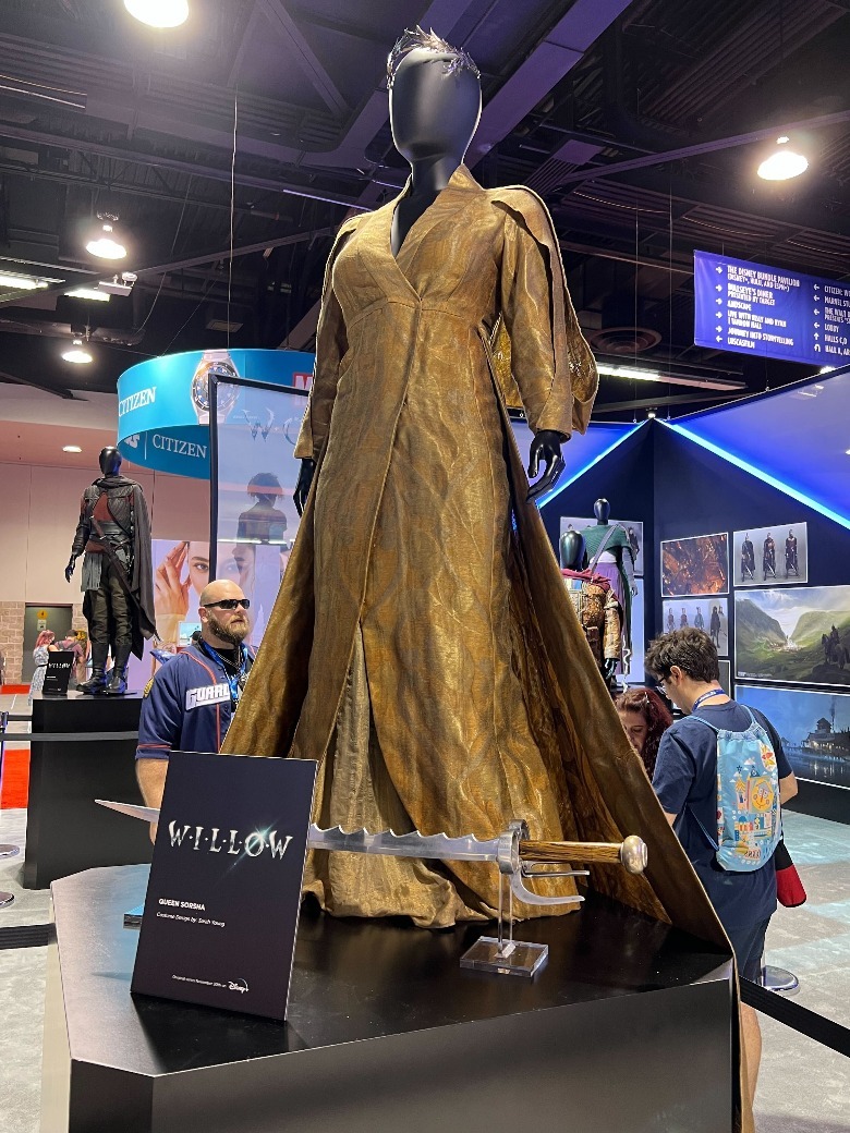 Disney's D23 Expo has officially begun in Anaheim, California, and /Film's own Ethan Anderton is on the floor right now, bringing us pictures of concept art and costumes from the upcoming streaming series "Willow." Coming to Disney+ on November 30, the show stars Warwick Davis in a reprisal of his titular role from the 1988 film "Willow," which was produced by George Lucas and directed by Ron Howard.
