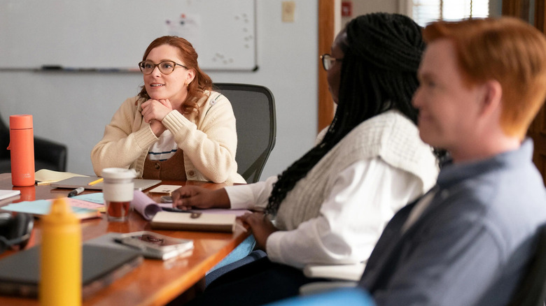 Reiser: Well, I remember when Steve just tossed out the idea that he was going to do that. And that's really, in many ways, where part of the core of this show is. It's like, it's a show that's rebooting, so how do you change from what you used to be to what you should be now? And Hannah, Rachel's character, [and] my character are the flag bearers of each. So we each bring our writers, each — my character's trying to keep it how it was. "I got old people who know what they're doing." And Hannah's like, "I got new people who can bring some freshness." Throw those in a room, it's going to be funny. And the actors that they got for those roles are so funny. I think we spent a lot of time just laughing in that room.