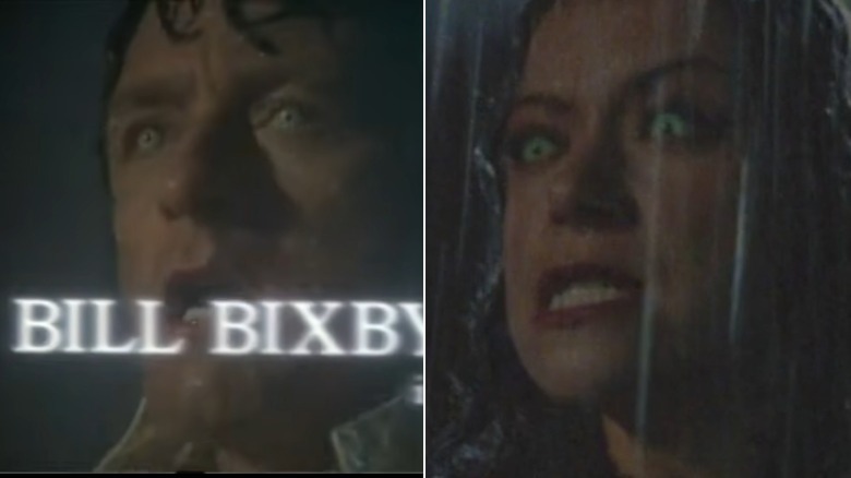 Each of them fixes a car in the rain, then have the same shot of them with bright green eyes while getting angry.