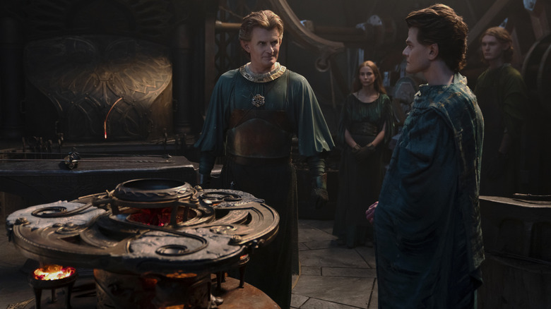 To describe the entirety of the finale as one that hardly moved the overarching plot forward in significant ways would be misleading, mind you. As far as the elven storyline is concerned, Elrond, Galadriel, and Celebrimbor continuously chafe under the stubborn high king Gil-galad (Benjamin Walker) as they race to find an answer to the impending extinction of their people. Once Galadriel and a mortally wounded Halbrand arrive at the high city from the ruined Southlands, the would-be king's chance meeting with the great elven smith feels a little suspicious right from the start. Just so happening to come up with the "intriguing solution" to their woes, Halbrand neatly inspires a way for Celebrimbor's harebrained scheme involving the forging of a crown infused with life-giving mithril to actually work.