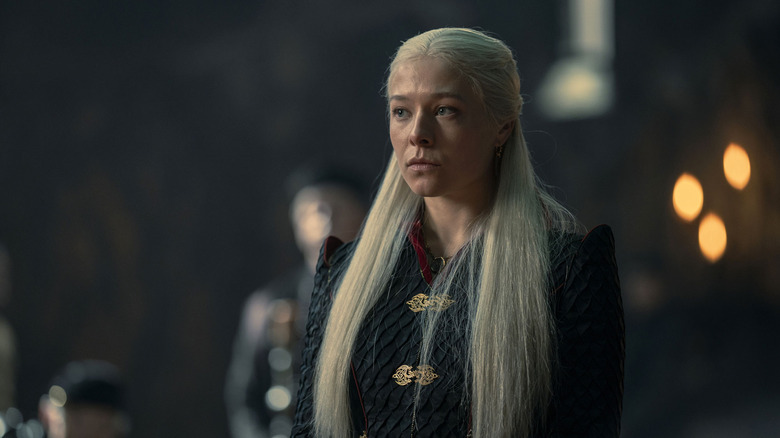 Rhaenyra has had the weight of the realm on her shoulders since King Viserys named her heir and relayed Aegon's dream of "A Song of Ice and Fire." This is a position she has known she will eventually be in, but it's been about 20 years since then. In that time, the urgency of her impending power wanes, and when the time finally comes, she isn't immediately on top of her game to assume the massive responsibility of being queen, needing to ease herself into the role. You put that mentality opposite the hot-headed Daemon, who publicly pledges his loyalty but privately is threatened and angry about her power, and you have the perfect recipe for real dramatic character stakes.