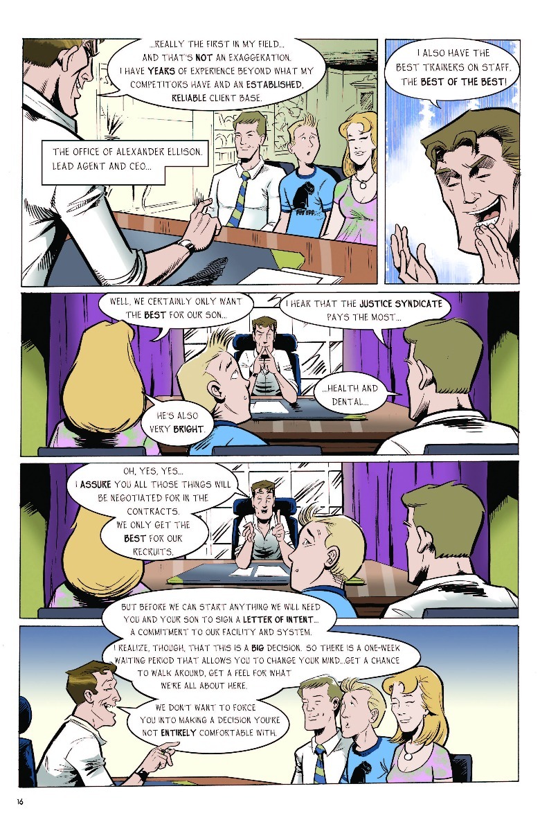 In /Film's exclusive preview of the book, which hits shelves this week, we get a glimpse at the odd world of superhero recruitment. In this world, various recruiters are out there to sign these super-powered individuals. Actors have talent agencies, baseball players have teams, wouldn't it stand to reason that people with superpowers would have similar agencies? To shed some further light, here is the official synopsis for the book: