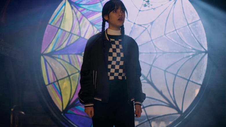 Somehow the popularity of the Addamses has never waned. Audiences flock to this creepy, kooky, mysterious, and spooky family like maggots to a dead carcass time and again. In this latest iteration, Jenna Ortega ("X," "The Fallout," "Scream") stars as Wednesday Addams, and she's joined by Catherine Zeta-Jones (Morticia), Luis Guzmán (Gomez), and Isaac Ordonez (Pugsley) as well as a slew of Nevermore Academy students. Next to the visuals (thanks to cinematographers David Lanzenberg and Stephan Pehrsson), the cast of characters is the strongest aspect of the series. Here, we list the main characters, from insufferable dudebros to charmingly goofy sidekicks and smarmy teaching staff. Take a seat by the fireplace and get ready for an altogether ooky list.