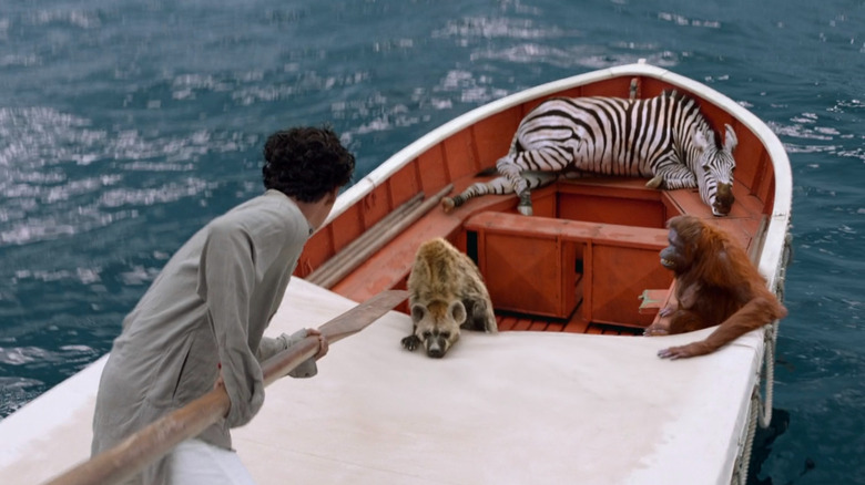 Initially, Pi shares the boat with four animals: a wounded zebra, a hungry hyena, a maternal orangutan, and the hidden tiger, Richard Parker. At the end, however, when Pi sits in the hospital, relating his extraordinary survival tale to Japanese investigators of the shipwreck, they're incredulous of details like this. By now, Pi's story has taken on too many other elements of the fantastic, such as a carnivorous island full of meerkats (which offers plenty of vegetation to eat, but threatens to swallow humans and their teeth whole if they settle into a life of complacency there).