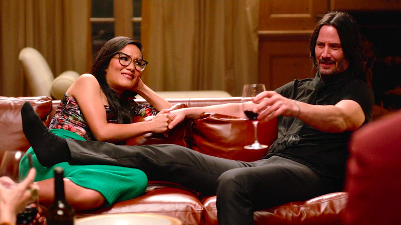 If you've seen the film, then you know the person in question is Keanu Reeves who plays a caricatured version of himself that's meant to gently poke fun at his occasionally spacey personality and "good guy" persona. Reeves plays the new boyfriend of Sasha (Ali Wong), a well-known chef who has remained best friends with her childhood friend — and crush — Marcus (Randall Park). Marcus and Sasha are obviously meant for each other, but in true romantic comedy fashion, they have to watch each other date other people before realizing it's really them that are meant to be together.