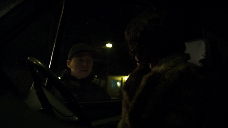 After her encounter with the group of aggressive men, Laura picks up another man on the road. The man (Adam Pearson) has a facial deformity and doesn't seem too keen on making conversation with Laura. But Laura turns on the charm and eventually gets him to open up, encouraging him to touch her when she learns he's never had a girlfriend. All of those long nights on the road have added up, and the viewer likely believes that Laura's begun to feel a sense of loneliness, a feeling she senses in this man as well.