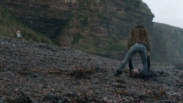 One of the most disturbing scenes in the film isn't the result of Laura's heinous objective. In this scene, Laura encounters a Czech drifter (Kryštof Hádek) camping by the ocean. Later, the Czech man attempts to save a married couple from drowning after they've swam into the ocean to rescue their dog. Laura finds him laying on the shore, exhausted, and proceeds to hit him on the head with a rock. She then drags him across the beach and into her van.