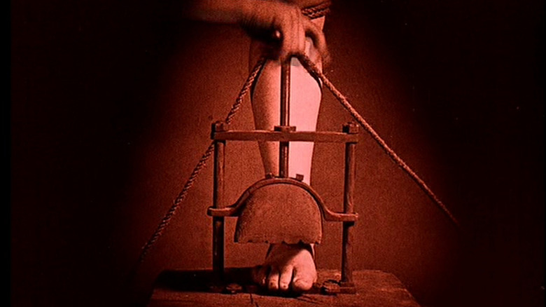 While all of the sequences that depict devil worship are a lot of fun, unfortunately, scenes of women kissing the buttocks of a furry man with a tail are soon replaced with instances of witch trials throughout history. First, we see what happens as women are rounded up and questioned about their "witchy" activities, and it's no surprise that many of them give up the names of "other witches" in order to try and lessen their own punishment. "Häxan" doesn't directly say that these supposed witches confessed to crimes they never committed because they were being tortured, but it does suggest it pretty explicitly.