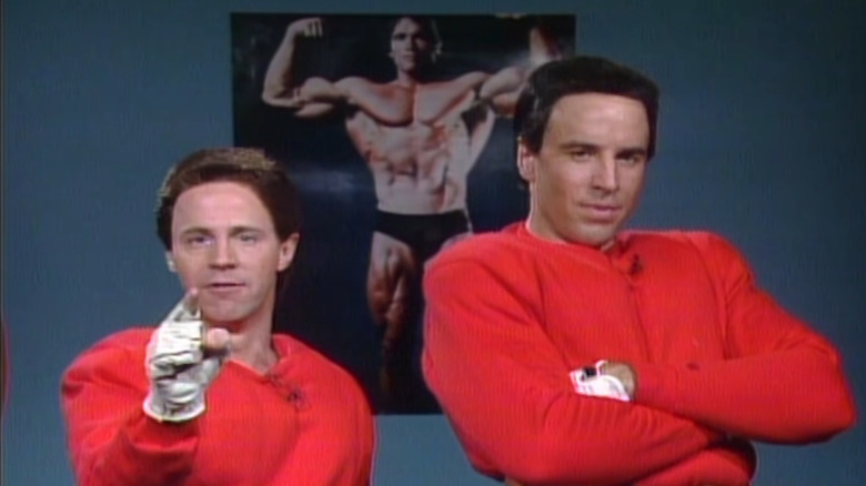 In 1988, "Saturday Night Live" debuted a sketch about two gym rats who wanted to help you get swole. It was called "Pumping Up with Hans & Franz," a fake TV show featuring two "cousins" of Arnold Schwarzenegger called Hans (Dana Carvey) and Franz (Kevin Nealon). These guys featured gap-toothed grins, spiky hair, and grey sweat suits full of dollar-store-looking muscle padding. Hans and Franz had Austrian accents like Schwarzenegger and told people how they were "girlie men" and, in one Halloween episode, gave out vitamin C instead of candy. You know, for fitness.