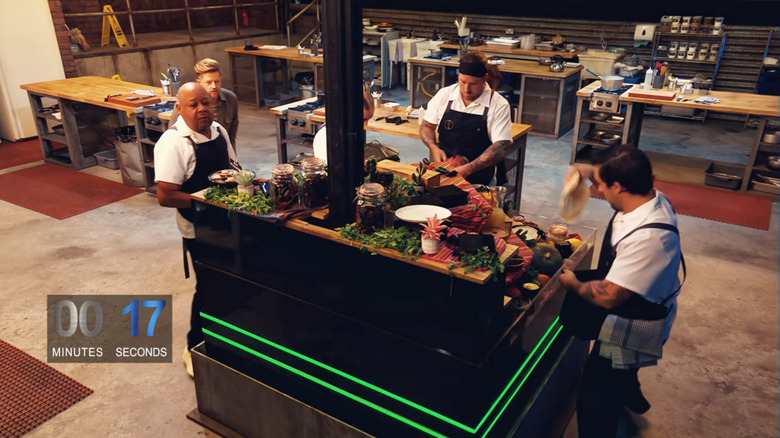As you can see in the picture above, the chefs cook on one of three platforms. The top kitchen has state-of-the-art equipment. There are sous vide machines, shiny counters, and any tool a chef could dream up. The middle kitchen is what you'd find in your average commercial kitchen. It's better than what you have at home, but nothing like the dream world of the one above it. The bottom kitchen looks like the back of a dive bar around 3:00 a.m. in the 1970s, right down to the brown decor. Everything is crappy down there, so if you create a winning dish while assigned to this place, your bragging rights go way up.