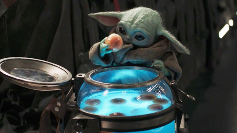 Our little Grogu is growing up! In the latest episode of "The Mandalorian" season 3, he arrives at Peli Motto's (Amy Sedaris) repair shop and says the word "Patu." She thinks it's his first word, and while it very well may be the first one we've heard, it isn't the first time we've heard it. In fact, the cutest little thing this side of a baby Ewok has been saying "Patu" since season 2 started. It's not written out in the closed captioning, so you — like me — might have originally thought it was just one of the adorable little noises he makes. Still, after rewatching the places where he says it in the second season (via a YouTube video from Janani R) and where he says it for the first time to Peli in "The Book of Boba Fett" (via another video from Simpy69), it's clearly a distinct word.