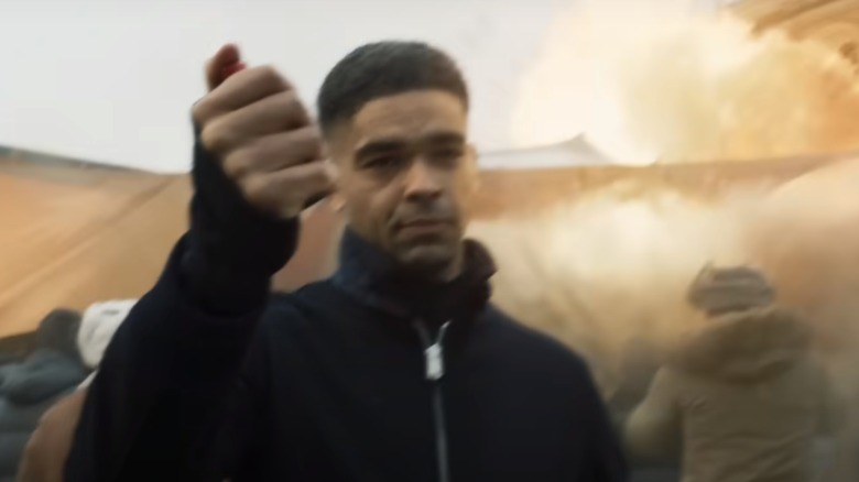 We cut to a shot of our first look at Kingsley Ben-Adir as the Skrull Gravik, who appears to be our main villain of the piece. He detonates a bomb in an act of straight-up terrorism. So yeah, things are bad.