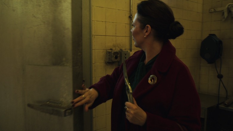It does seem like Falsworth might have something to do with it, as we quickly cut to a shot of her brandishing some sheers, getting ready to "talk" to someone who is tied to a chair. Clearly, she's not the type to f*** around.