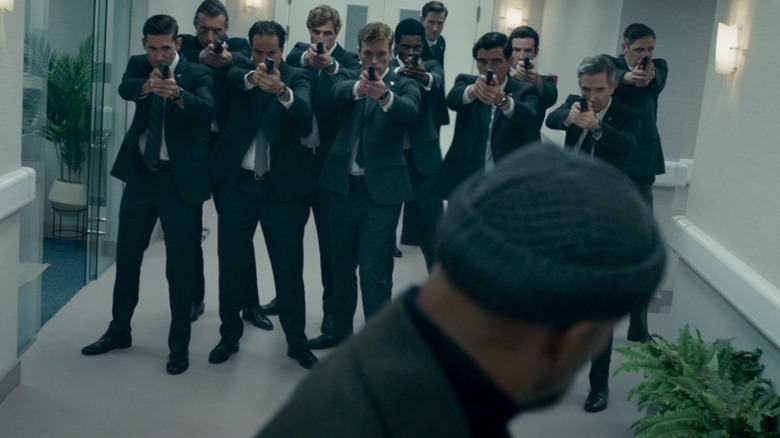 Perhaps Nick Fury needs to be doing this all by himself because he's on the wrong side of the law this time around. Case in point, we see a straight-up small army of agents holding him at gunpoint, while a familiar voice let's us know that he is the most wanted man on the planet.