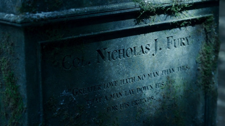 In a rather intriguing moment, we see Fury and Falsworth visiting his grave ... which, of course, is not actually his grave. It's here where Fury explains that "this is personal," which is why he's doing his thing despite the shape he's in.