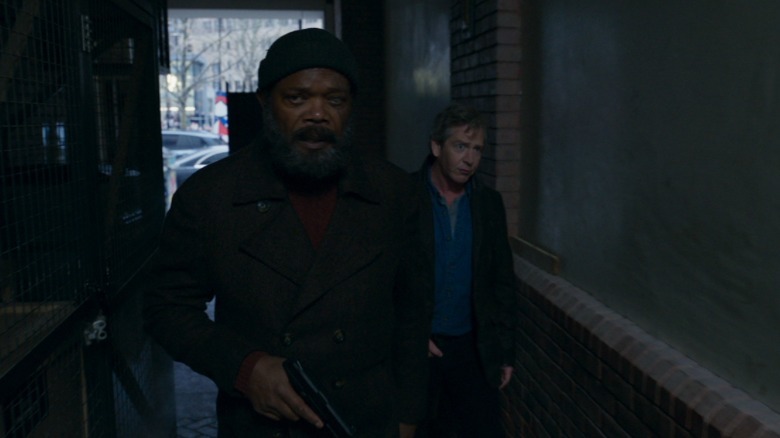 Not of critical importance, but the next shot shows us Nick Fury looking a lot more like the Nick Fury of old, with his eye patch on, shaved head, and that ever-serious look on his face. This looks like a Fury that is ready for action, which certainly explains him delivering the line, "Why do you think I came back?" at this moment.